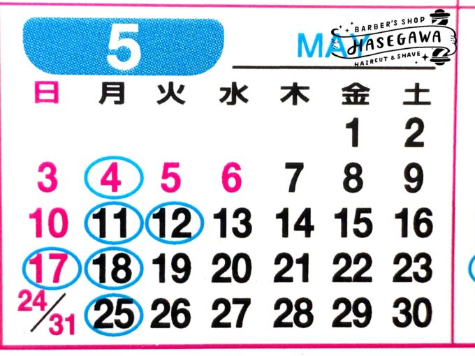 5月の定休日